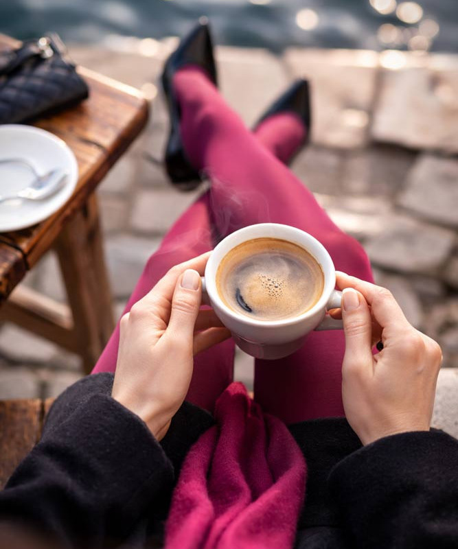 Mikrofibra je zame velik plus. Nogavice so skoraj neprosojne, dovolj debele, da zunaj prijetno grejejo, hkrati pa v notranjih prostorih ni občutka, da bi mi bilo prevroče. To so nogavice, v katerih lahko brez težav preživiš cel dan – od sprehoda ob morju do kave v mestu.