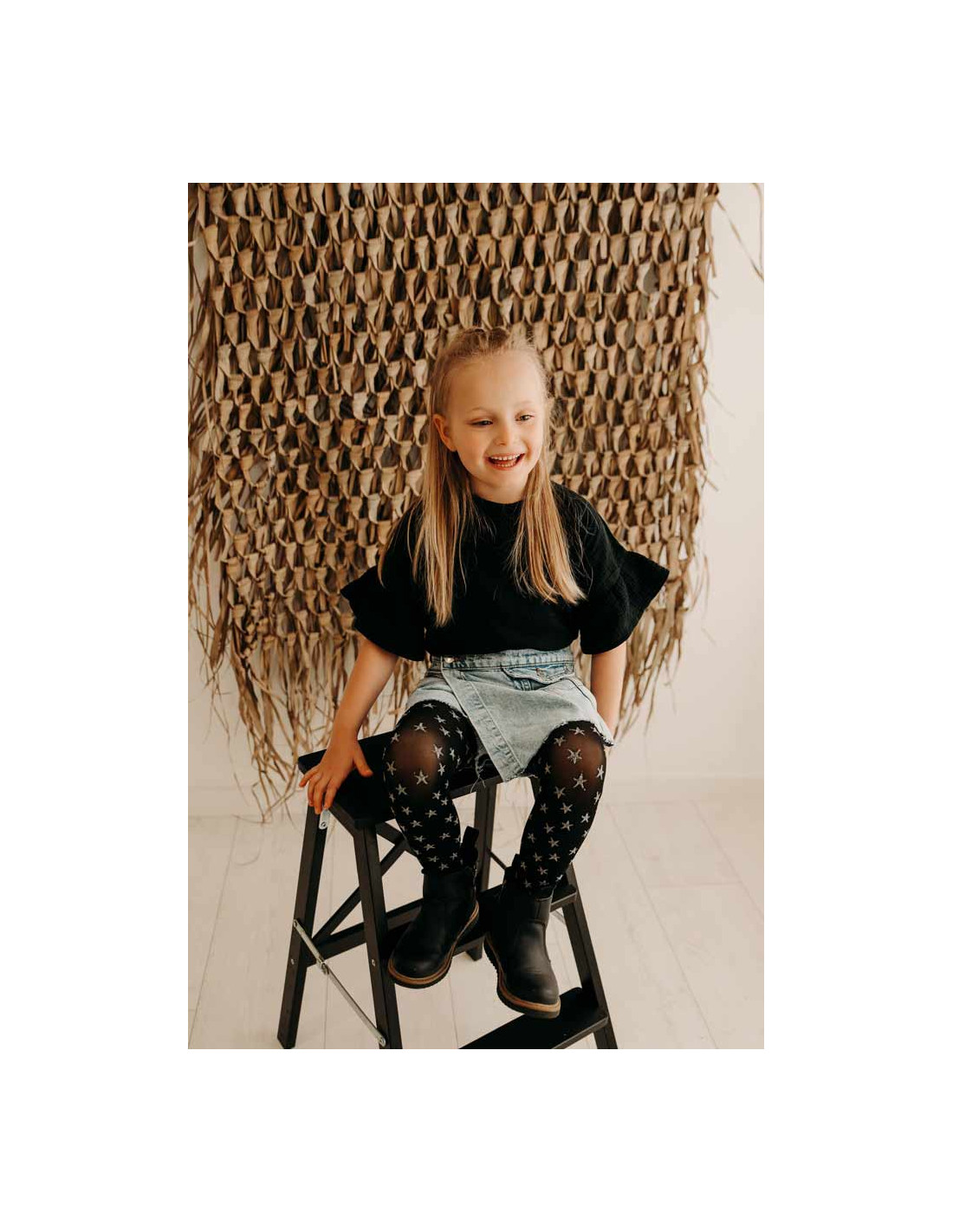 40 denske nogavice za deklice z vzorcem zvezdic, ki zaradi metalizirane preje "zableščijo" v soju luči. So udobne in mehke, hkrati pa trpežne.